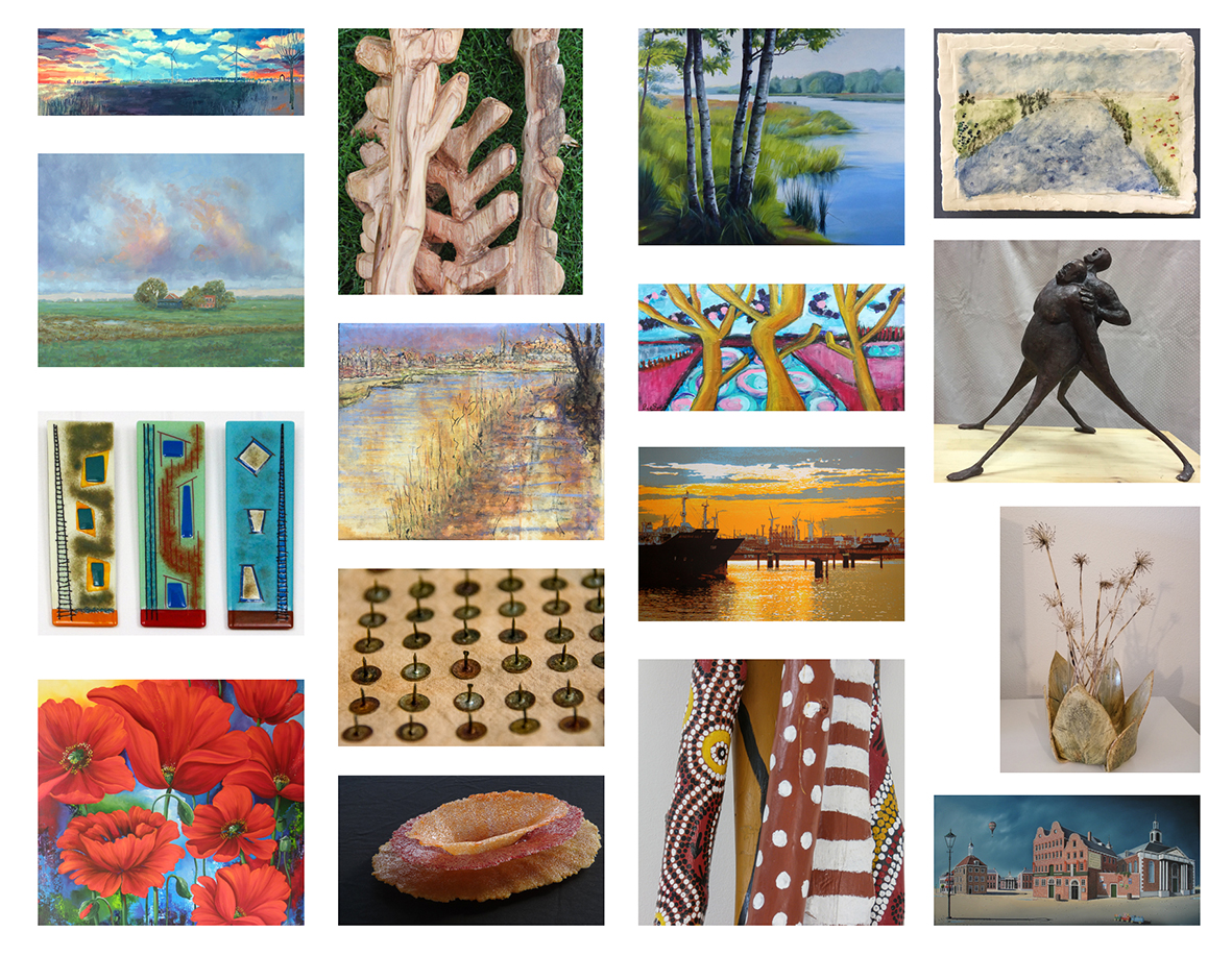 U kunt werk komen bewonderen van Friedie Kloen, Hans Korving, Manja Bravenboer, Elly van Baalen, Gonny van den Nouwelant, Marion Korver, Willy Minderhoud, Dick Tulp, Hanneke Wessels, Frits Veenland, Lida van der Sar, Ans van de Wiel, Frans Vonk, Anja Keijzer, Roeland van Reem en Bas Verkade.