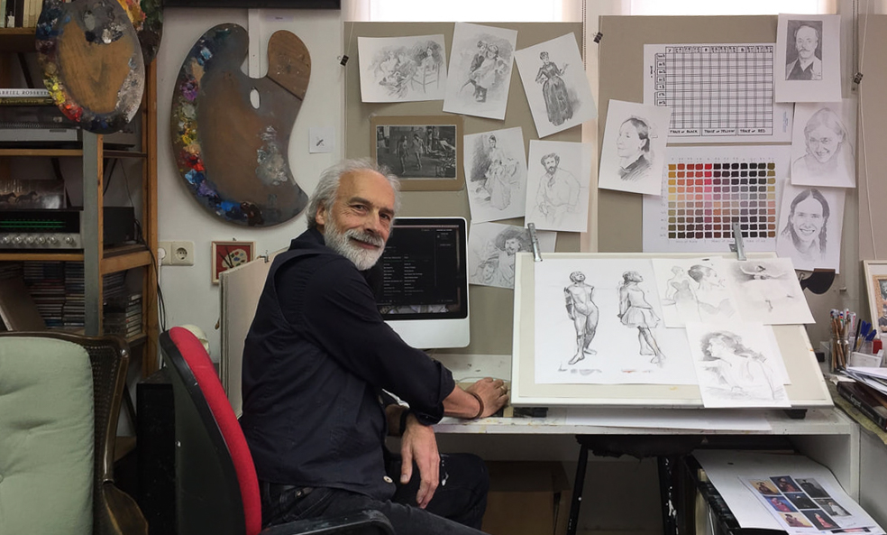 Dick Tulp is professioneel kunstschilder en beeldhouwer. Zijn grote voorbeelden zijn onder anderen Velasquez, Hals, Singer Sargent. Hij bestudeert hun ideeën en werkwijzen over schilderen ten aanzien van compositie, kleur, toonwaarden en meer. Door daarmee voortdurend te oefenen en te spelen zoekt en vindt hij zijn eigen pad, dat is geworteld in de traditionele schilderkunst. En steeds is hij daarin op zoek naar de altijd verrassende en verheffende kracht van de schoonheid.